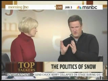"And services," Mike Barnicle chimed in. The "Morning Joe" panel was discussing the recent blizzard in the northeast United States, and the uproar that ensued from poor public services in New York City and the governor of New Jersey being on vacation during the blizzard.