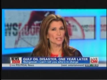 "I'm just so shocked by that," she gasped. "Is there any chance that Congress will pass legislation on safety anytime soon?" She mentioned "safety laws," "increased penalties for violations," and "law on how oil companies must respond to such a disaster" as examples of what Congress could be enacting into law.
