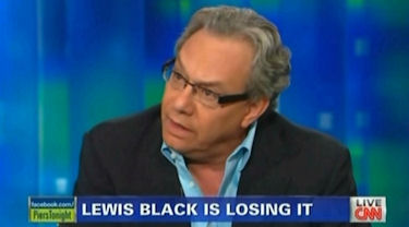 Crusty comedian Lewis Black mocked Sarah Palin as a "fictional character" on CNN Wednesday, to an eruption of laughter from host Piers Morgan. "She's a fictional character that came to life. I'm serious. I think that someone wrote her," Black quipped.