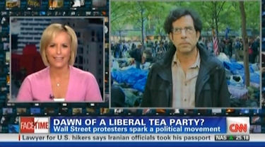 During the 1 p.m. hour of Tuesday's Newsroom, CNN's Randi Kaye touted the potential for the "Occupy Wall Street" protests around the country to morph into a "left wing Tea Party." Kaye reported that the group is "gaining momentum" and hosted one of the protestors for a soft interview.