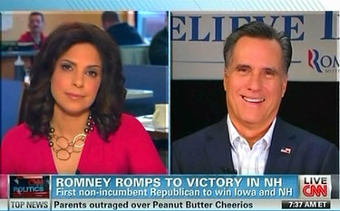 When DNC chair Debbie Wasserman-Schultz claimed that Mitt Romney suffered a "setback" in New Hampshire, CNN Soledad O'Brien challenged her outlandish assumption – but then used the talking point to grill Romney in a later interview with the candidate.