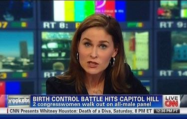 Liberal women were in an uproar over the all-male panel at Thursday's congressional hearing on the HHS birth control mandate, and CNN made sure to tout their displeasure. Anchor Hala Gorani emphasized the "fireworks" over the hearing while ignoring the Republican explanation as to why a female pro-birth control witness was refused participation in the panel.
