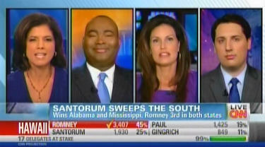 ZORAIDA SAMBOLIN: All right. Penny, you endorse Santorum, and you're a woman. So, I want to get your reaction to this. Santorum won the vote of women last night. So, let's take a look at it. In Alabama, he won 38 percent of the vote, in Mississippi 35 percent. But overall, southern states are more conservative, and if you look at the latest New York Times/CBS poll, women voters, 50 percent of them go to Obama to Santorum's 40 percent. Is this going to be a looming problem ahead as we go to less conservative states?