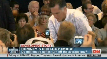 [HEADLINE: Romney's Rich-Guy Image: Do millionaire gaffes turn off the average guy?]