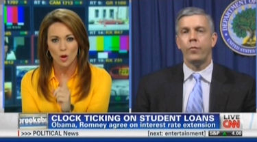 BALDWIN: So, Romney is with the President on this one, wants to prevent the rate on student loans from doubling come the first of July. And the office of House Speaker John Boehner says Boehner is trying to work something out as well. So got us thinking where exactly is the fight here. I want to bring in Arne Duncan, he is the President's Secretary of Education. He joins me live. Mr. Secretary, it's nice to have you back on the show.