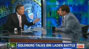 The interview began innocently, as Morgan asked about Goldberg's newest book "The Tyranny of Cliches." But he immediately switched gears and, in Goldberg's words, "cross-examined" him over the conservative backlash against President Obama's remark that Mitt Romney would not have given the order to kill bin Laden.