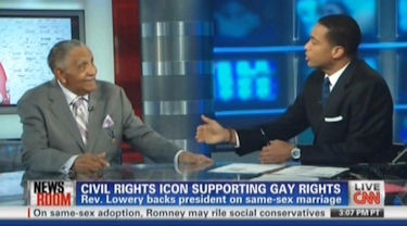 He later compared Mitt Romney to segregationist Governor George Wallace, but during the 6 p.m. hour Lemon hosted activist Rev. Joseph Lowery – who also gave the benediction at President Obama's inauguration – and both of them criticized opponents of same-sex marriage.