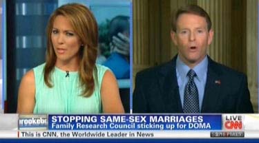 During the interview, she quoted Dick Cheney and Colin Powell as supporting same-sex marriage and pressured Perkins to state "why are they wrong?" And towards the end of the interview she descended to a "personal level" and challenged him if he'd "ever been to the home of a married same-sex couple," asking what he'd say to the hypothetical same-sex couple.