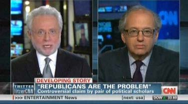 WOLF BLITZER: They're a pair of veteran political scholars. One from a liberal think tank, one from a conservative think tank, and they've sent out shockwaves with their claim that Republicans are mostly to blame for the gridlock and the dysfunction in Washington.