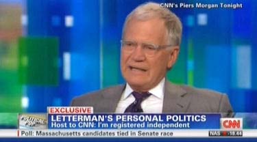 Letterman also denied he has a partisan bias, saying he is a "registered independent" and that "You go where the material takes you." But even the liberal MediaIte is calling his bluff, insisting that he is a liberal hack and pointing to his harsh treatment of Bush versus his defense of Obama as evidence.