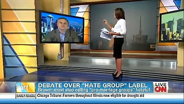 Her guest Brian Brown of the National Organization for Marriage had denounced the SPLC's "hate group" rating, but it's no secret that CNN respects the SPLC and has repeatedly touted its research on hate groups in the U.S. Sambolin stood by the SPLC's rating.