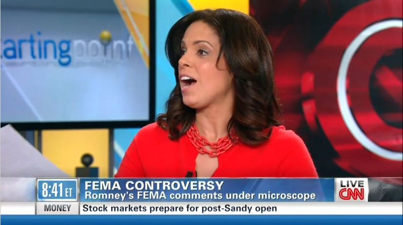 Granderson grossly distorted what Romney said, claiming he wants to "take all that money out of FEMA, give it back to the states" and that "having money for FEMA is immoral." Cardona ridiculously declared that "Mitt Romney said flat-out that he thinks that FEMA should be abolished and should be privatized".