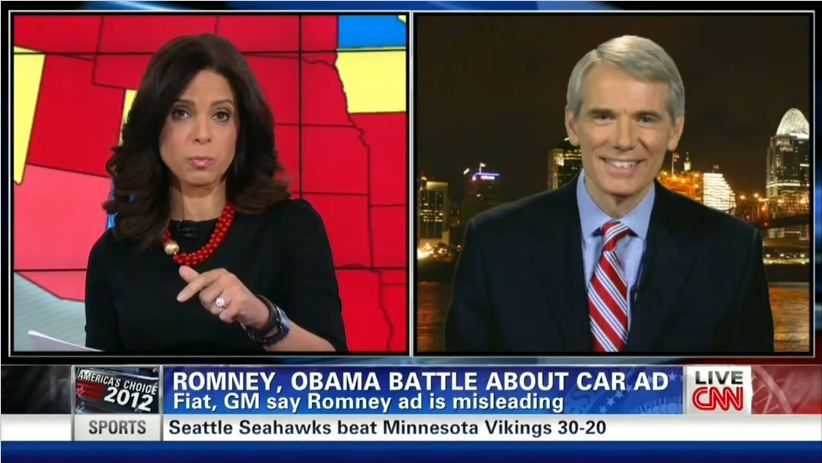CNN's Soledad O'Brien threw Democratic talking points at Sen. Rob Portman (R-Ohio) on Monday's Early Start, but the Romney surrogate was ready as he defended the campaign's Jeep ad.