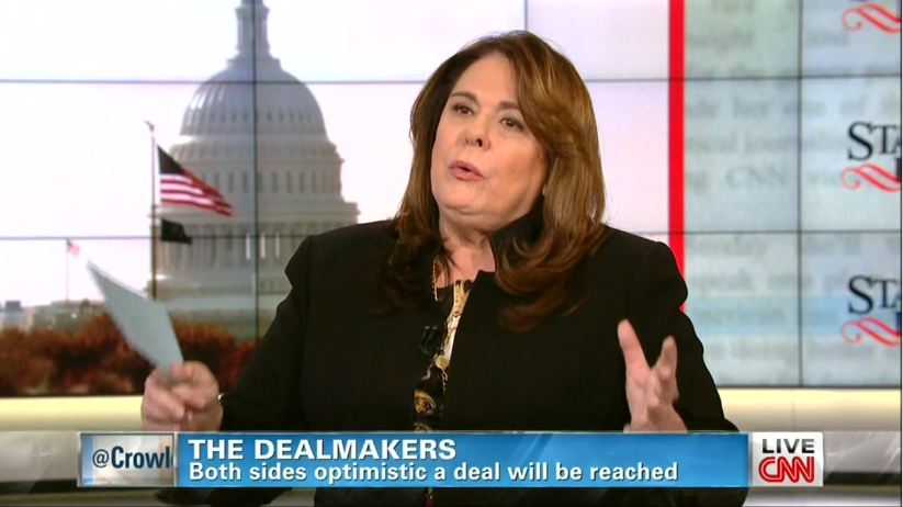 Crowley pounded away on the standoff over tax hikes, and GOP Congressman Tom Price (Ga.) was the only person, guest or host, to mention spending cuts during the segment. Crowley observed that Republicans may be defying the mandate of voters by not raising taxes.