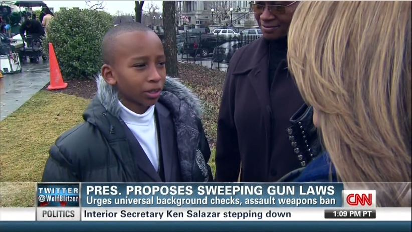 One of the children Yellin interviewed, 11 year-old Julia Stokes, had written Obama, "I beg you to try very hard to make guns not allowed." CNN's Wolf Blitzer used that quote as he introduced Yellin's report.