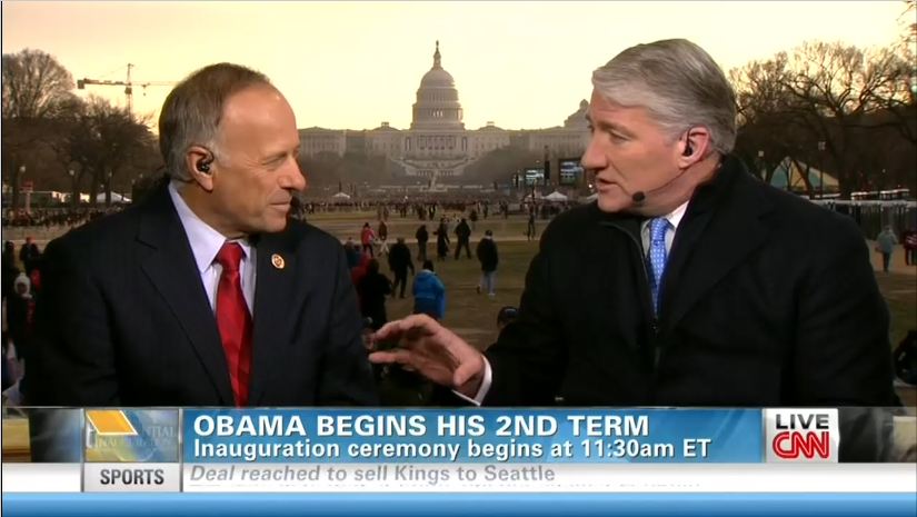 During CNN's inauguration coverage on Monday's Starting Point, correspondent John King helped bolster President Obama's image as he asked Tea Party Congressman Steve King (R-Iowa) if Republicans were "chastened" by Democratic electoral victories.