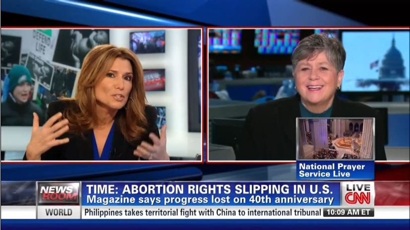 Reporting on the 40th anniversary of Roe v. Wade on Tuesday, CNN's Carol Costello pelted a pro-life guest with liberal talking points while chiding the president of pro-choice NARAL for not doing enough for the pro-choice movement.