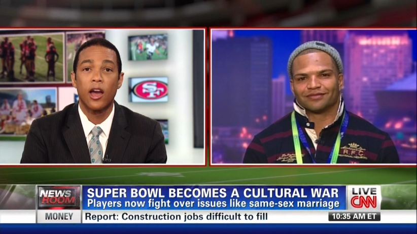 The morning after the Super Bowl, CNN's openly-gay anchor Don Lemon interviewed gay rights activist and Baltimore Ravens linebacker Brendon Ayanbadejo and thanked him for his work. No guest from the other side was brought on.