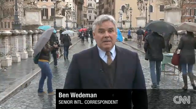 Since when could CNN reporters tell the Catholic church what it should be doing? Wedeman hammered the church's problems, "a church in which the gap between the shepherd and his flock seems to be growing ever wider." He hyped the "Winds buffeting the church."