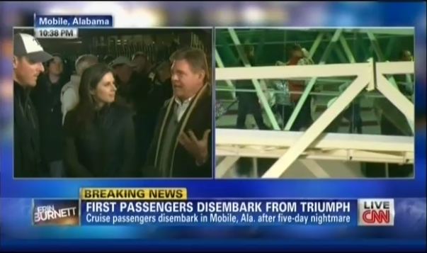 As Carnival Triumph passengers began to deboard their crippled ship late Thursday night, CNN's Martin Savidge decided to compare their "isolation factor" at sea to that of Hurricane Katrina victims. Passenger Rob Kenny quickly put the cruise fiasco in perspective.