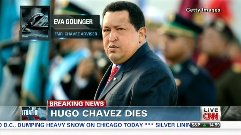 EVA GOLINGER: Yes. Good afternoon. Yeah. And also a close friend. So obviously this news is very difficult, even though it's been something that we've been expecting to hear in recent days particularly because of the bad turn, the worsening of Chavez's health. So it's terrible news for millions of people in Venezuela and around the world who love Hugo Chavez, have had a very close connection with him for over a decade now. He's been, I think, probably the most I would say, president that's had the biggest impact on Venezuela and has dramatically transformed Venezuela in its history since the times of independence of Simón Bolivar.