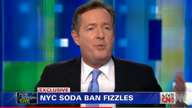 CNN's Piers Morgan has become an apologist for the nanny state. He defended Mayor Bloomberg's large soda ban on his Monday night show, a ban that was shot down that day by the state supreme court for being "arbitrary and capricious."
