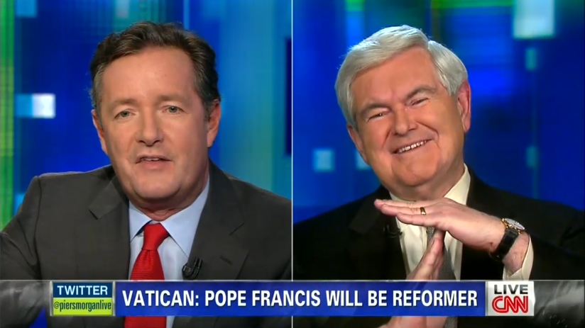 Amidst the liberal media's fixation on Pope Francis upholding Catholic teaching on sexuality, Newt Gingrich knocked their wishes of liberal "reform" on Wednesday's Piers Morgan Live.