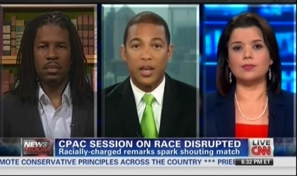 DON LEMON: Listen, this won't help. And I want to give this example. You were at CPAC this week, a huge gathering of political conservatives. I want to show everyone an incident from Friday. It's at a session titled "Trump the Race Card: Are you sick and tired of being called a racist when you know you're not?" When a guy stands up and he disrupts the moderator and he appears to defend the benefits of slavery. Listen closely.