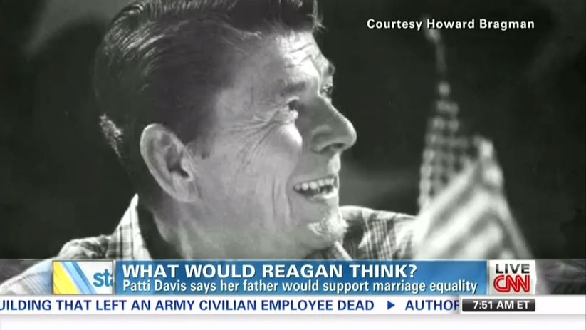BROOKE BALDWIN: And now Patti Davis, author and daughter of President Ronald Reagan is talking about how her dad might have felt about this whole debate. She talked about it in an online interview with friend and gay rights advocate, Howard Bragman.