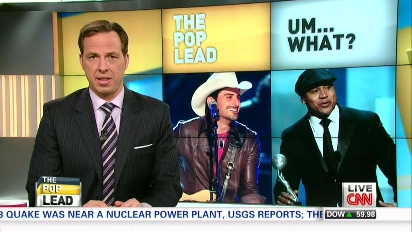 "Brad Paisley and L.L. Cool J teamed up to tackle the serious issue of racism," noted The Lead host Jake Tapper. "The song, which is on Paisley's new album is an attempt to use music to confront issues of racism and stereo typing head on. But what we end up with is a duet that in my view makes 'Ebony and Ivory' sound like 'The I Have A Dream' speech," Tapper quipped.
