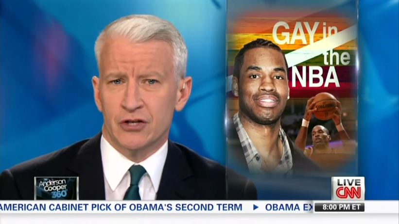 Openly-gay host Anderson Cooper touted, "Pro center Jason Collins becoming a true pioneer, the first big league male athlete to say he's gay." He called it a "historic decision."