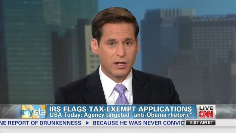 A USA Today report stated that the IRS "flagged" groups based on "'anti-Obama rhetoric', inflammatory language and 'emotional' statements." CNN briefly mentioned the bombshell report once, on Wednesday's Early Start at 5:08 a.m. ET. The network has ignored the report since, moving to join the networks in their blackout.