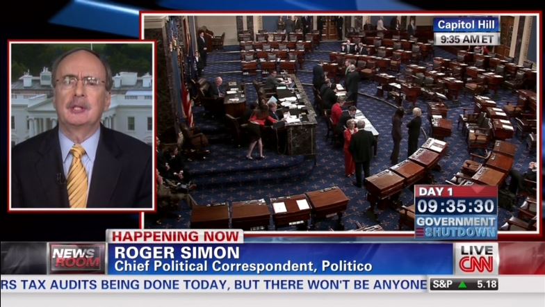 On CNN Tuesday, Politico's Roger Simon slammed the "extreme right-wing" for using "food as a political weapon," for taking the GOP "hostage," and for denying "health care to 11 million people" in favor of a shutdown.