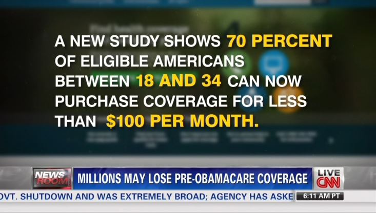 KEILAR: A new study shows 70 percent of eligible Americans between 18 and 34 can now purchase coverage for less than $100 per month. But that's if they can sign up. Healthcare.gov was knocked offline Sunday, along with the data hub that verifies eligibility for government subsidies. Service was restored Monday. As the Health and Human Services department aimed for a November 30th deadline to get the site fully operational, it's giving detailed updates on problems.