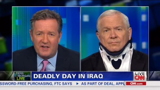 PIERS MORGAN: There's another big news story today which is absolutely in your old wheel house, which is Iraq, 61 people at least were killed and scores wounded in the latest wave of attacks in Baghdad and across the county. It looks from the outside as if Iraq is teetering into real civil war here, with the double problem of al Qaeda now apparently running Fallujah and other areas in Iraq. When you at it in totally is it possible to conjure up any impression that this was a successful mission for America and the allied forces there?