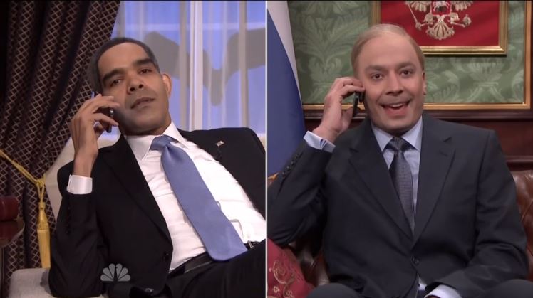 Impersonating Russian president Vladimir Putin on a mock phone call with Obama, Fallon took a swipe at ObamaCare after the President accused him of forcing Russian allegiance upon Crimea: