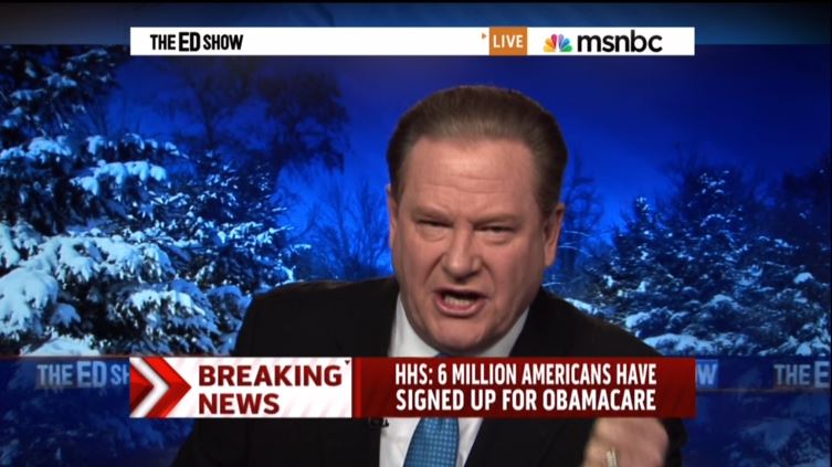 ED SCHULTZ: We're going to start with a number tonight, because it's a number that very few people in this country thought we were going to reach. The breaking news at this hour is that the Affordable Care Act has reached six million sign-ups. To me, I think this is amazing, when you consider the countless hours on right-wing radio, 600 stations across the country that basically did a jihad on Obamacare. Fox News, segment after segment after segment, how bad Obamacare is, hundreds of millions of dollars have been thrown at the American people about how bad it is and it's not going to work. The negativity coming from Boehner, and the countless hours that have been spent on the House floor just jamming the law. And of course the bad roll out. Let's go back to the bad roll out. Let's go back to October 21st when President Obama said this: