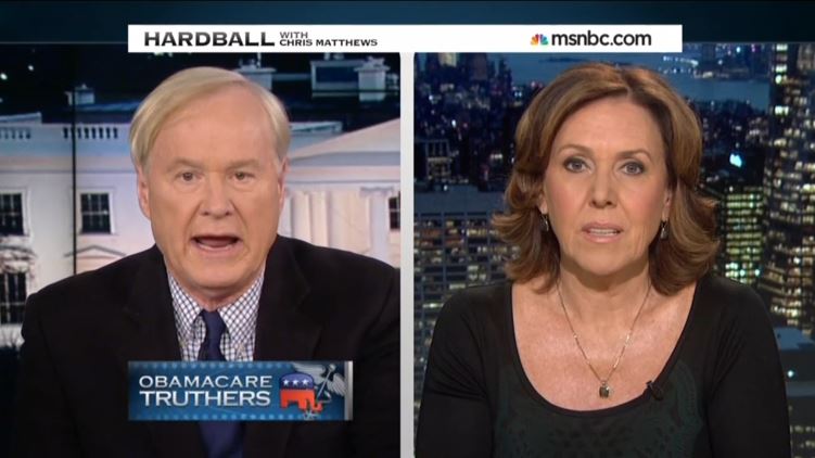 On Thursday's Hardball, host Chris Matthews and guest Joan Walsh disparaged conservatives who disputed the administration's ObamaCare enrollment numbers "birthers" and "truthers."