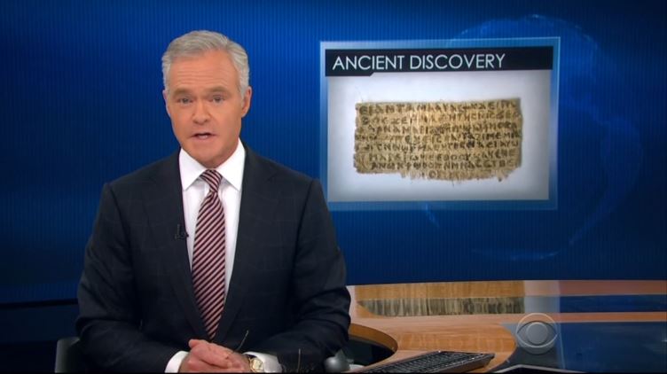 "We have the results of scientific testing on a controversial scrap of papyrus that some call the 'gospel of Jesus' wife'," touted CBS Evening News anchor Scott Pelley. He added that "scholars say that doesn't prove that Jesus had a wife but that early Christians debated whether he did."