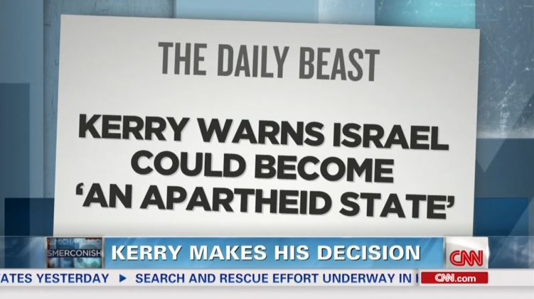 Monday evening's broadcast networks ignored Secretary of State John Kerry saying that Israel risks becoming an "apartheid state" if it doesn't adopt a two-state solution with Palestine. Kerry made the comments on Friday in a closed-door meeting, and the ensuing outrage extended to both Republicans and Democrats on Capitol Hill.