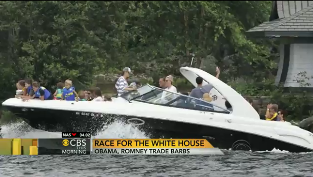 Norah O'Donnell took a shot at Romney on CBS This Morning stating  "while the president's on a bus, Romney's been on a boat, photographed while on vacation with his family in New Hampshire, and facing criticism from his own party."