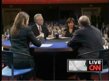 Near the end of the hour, the CNN personality pressed the Republican on the health care issue. Karibjanian contributed to the interrogation. Near the end of the exchange, O'Donnell did turn the tables a bit on the two moderators. One might wonder at this point whether the candidate was debating her Democratic opponents or the two members of the media: