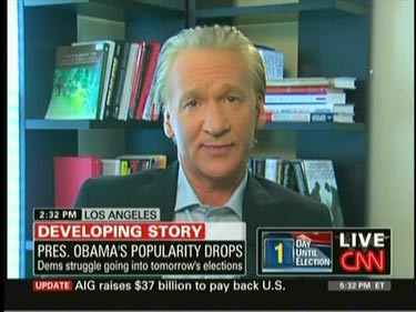 The left-wing HBO host appeared for two segments starting at the bottom of the 5 pm Eastern hour. Anchor Wolf Blitzer began with an election-related question: "Let's talk a little bit about what's going to happen tomorrow. A lot of Democrats are worried. They're sitting on a potential political disaster tomorrow. Here's the question to you: why? What happened?"
