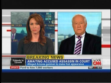 On Monday's Newsroom, CNN treated Arizona's gun laws as a significant contributor to the shootings in Tucson. Correspondent Jessica Yellin prompted the local prosecutor to spout her pro-gun control views. Anchor Brooke Baldwin highlighted a local Republican's gun-toting ad and the infamous clip of an anti-Obama protester carrying a semi-automatic rifle outside a 2009 presidential event in Arizona.