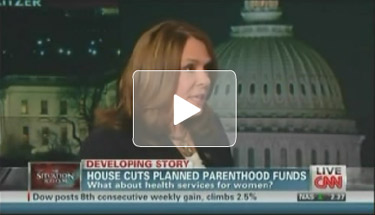 The journalist, who was substituting for regular anchor Wolf Blitzer, brought on the Iowa Republican and his Democratic colleague, Rep. Debbie Wasserman Schultz, to comment on the current budget debates at the state and federal levels. Towards the end of her interview, at the 42 minutes into the 6 pm Eastern hour mark, Crowley raised the 240-185 vote earlier that afternoon to eliminate federal funding of Planned Parenthood, and used an argument similar to that of liberal Fox News contributor Jehmu Greene, who emphasized on the February 3, 2011 edition of The O'Reilly Factor how the organization's employees "provide mammograms [and] provide birth control advice." The anchor also hinted that cutting off Planned Parenthood would end up costing more tax dollars in the long run: