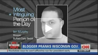 MALVEAUX: A blogger whose prank phone call landed a 20-minute conversation with the governor of Wisconsin is our 'Most Intriguing Person of the Day.' He is Ian Murphy, a political writer for the buffalobeast.com. Murphy was able to reach and record the governor by claiming to be billionaire David Koch, a major funder of conservative causes. The conversation is posted at buffalobeast.com.