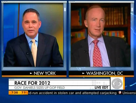 [CBS News Graphic: "Race For 2012: Gov. Daniels On Meeting With Christie"]