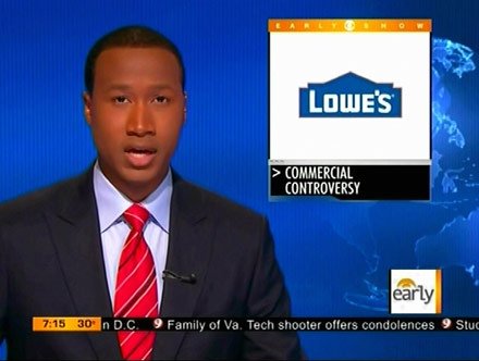 CBS's Terrell Brown's outlined how Lowe's is "being criticized for pulling ads from a reality television series about Muslim-Americans" during his news brief on The Early Show, and noted that "when a Florida conservative group complained, Lowe's withdrew its commercials. Critics call that bigotry, and are threatening to boycott Lowe's."