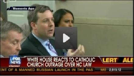 Fox News's Ed Henry challenged White House Press Secretary Jay Carney during a Tuesday briefing over the growing controversy surrounding the Obama administration's move on January 20 to force most employers to cover sterilization, abortion-inducing drugs, and contraceptives in their health care policies without co-pay. This new federal mandate would force Catholic institutions, like hospitals and schools, to decide whether to obey it or follow the Church's teachings against contraception.
