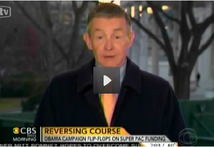 CBS This Morning on Tuesday led its broadcast with the Obama re-election campaign's decision on Monday night to reverse its opposition to super PAC fundraising. Charlie Rose teased the report by noting how "the White House...flip-flops on controversial super PAC donations." ABC's Jake Tapper used the same term on Good Morning America. NBC's Today show completely ignored this breaking development.